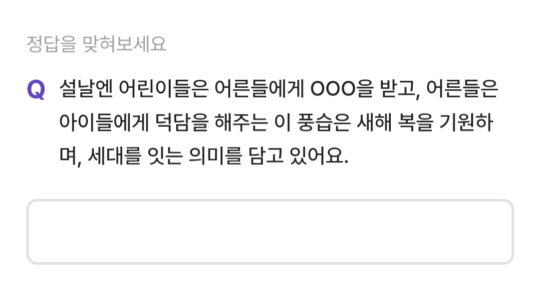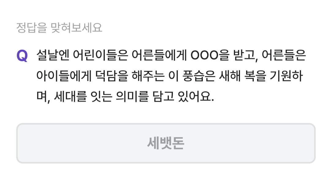설날엔 어린이들은 어른들에게 이것을 받고, 어른들은 아이들에게 덕담을 해주는 이 풍습은 새해 복을 기원하며, 세대를 잇는 의미를 담고 있습니다.