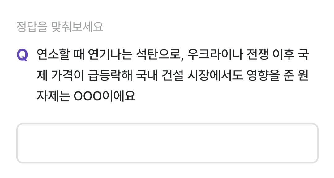 연소할 때 연기 나는 석탄으로, 우크라이나 전쟁 이후 국제 가격이 급등락해 국내 건설 시장에서도 영향을 준 원자재는 무엇일까요