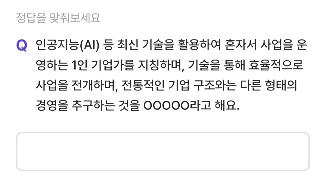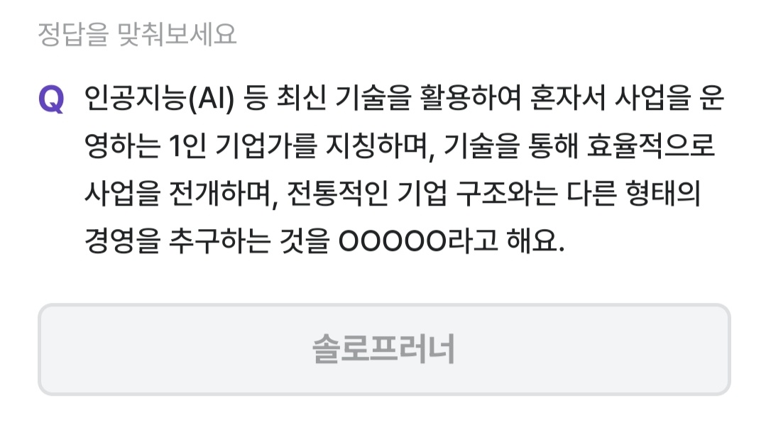 인공지능(AI) 등 최신 기술을 활용하여 혼자서 사업을 운영하는 1인 기업가를 지칭하며, 기술을 통해 효율적으로 사업을 전개하며, 전통적인 기업 구조와는 다른 형태의 경영을 추구하는 것을 무엇이라고 할까요?