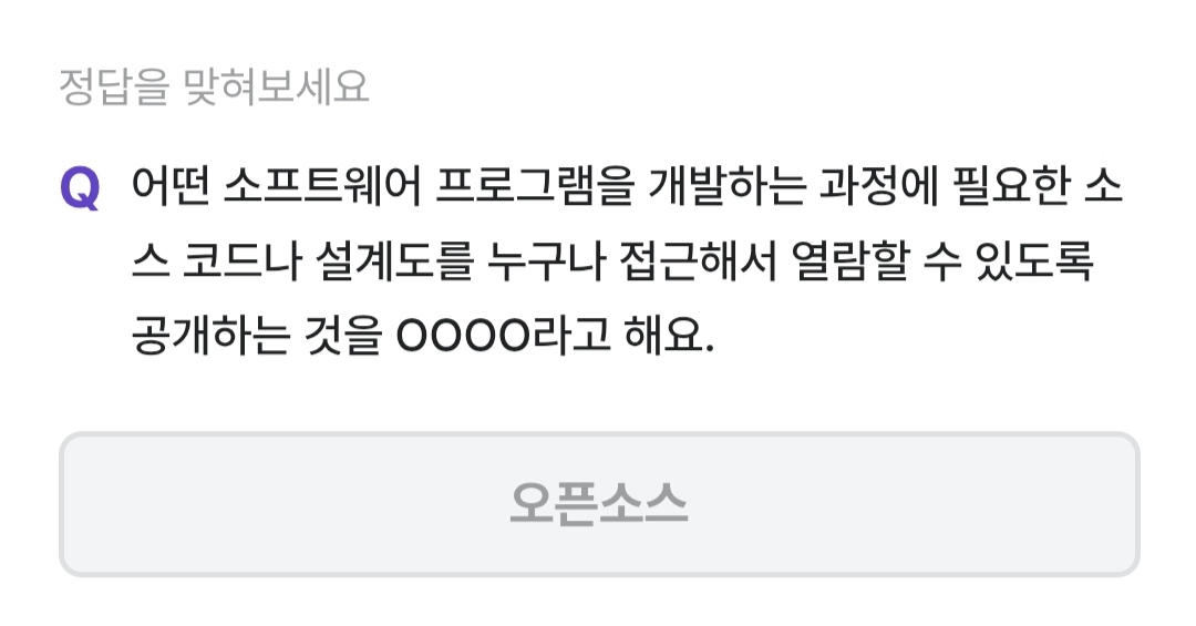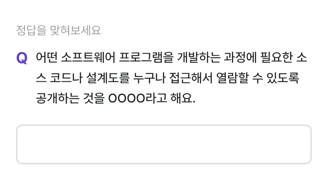 어떤 소프트웨어 프로그램을 개발하는 과정에 필요한 소스코드나 설계도를 누구나 접근해서 열람할 수 있도록 공개하는 것을 무엇이라고 할까요?