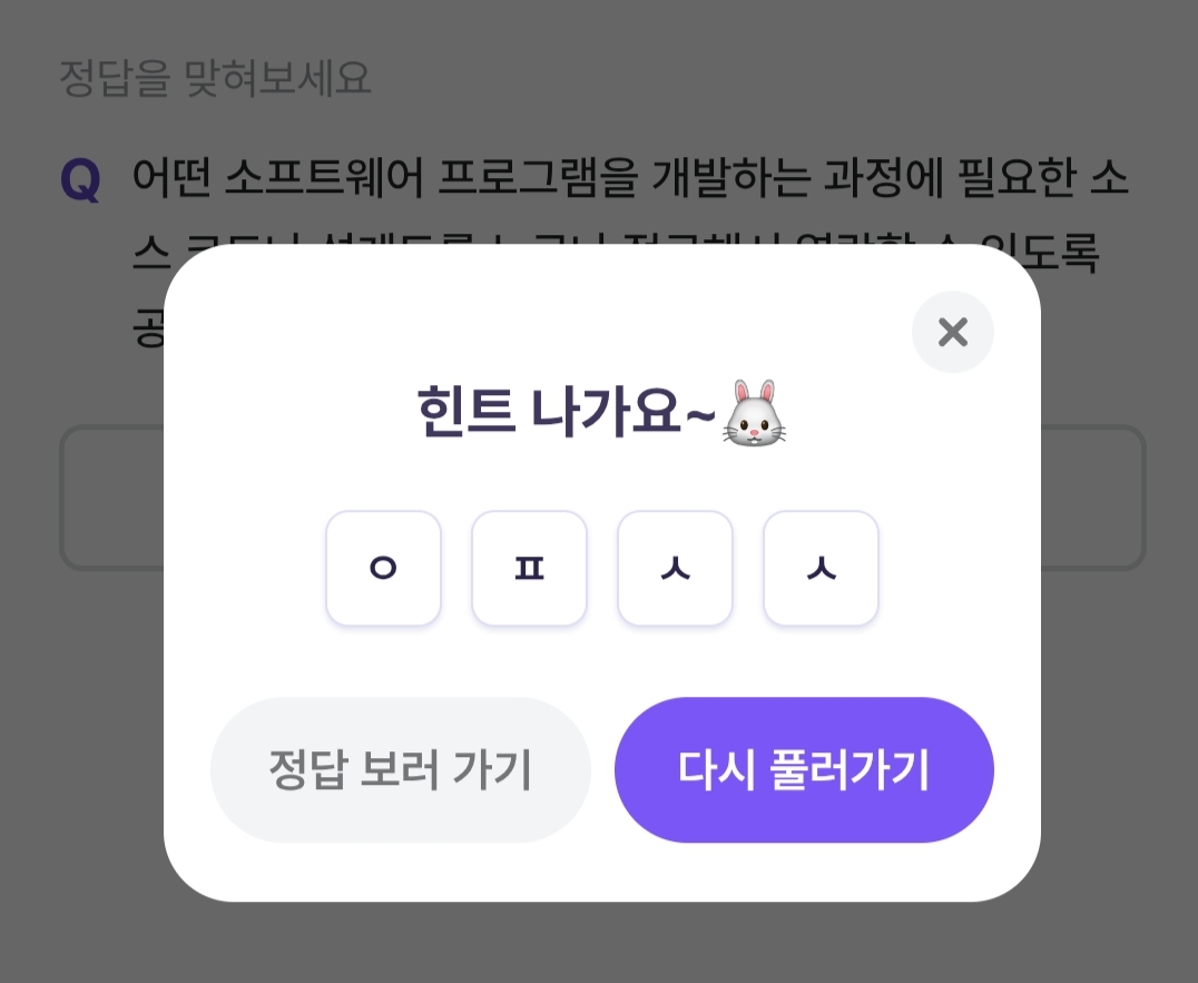 네 글자 초성힌트는 ㅇㅍㅅㅅ입니다.
