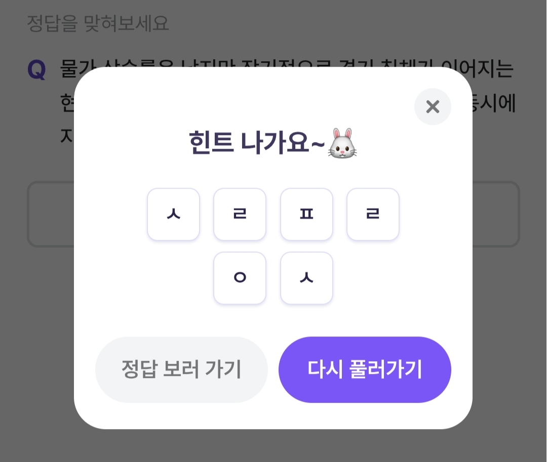 스태그플레이션, 인플래이션 등 물가 관련한 용어가 떠오릅니다. 플레이션은 맞을 것 같고요. 정답 알아보겠습니다.