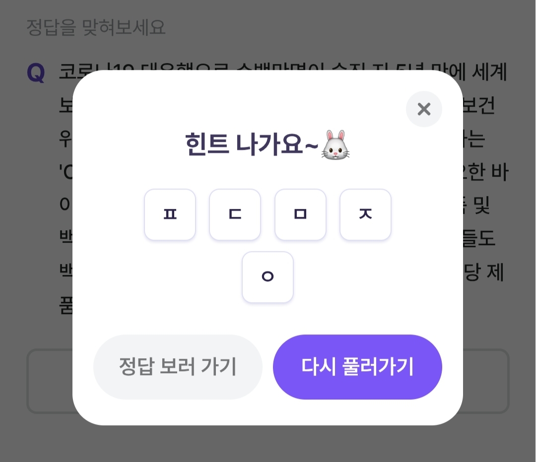 비트버니 퀴즈 4월 28일 정답 ㅍㄷㅁㅈㅇ