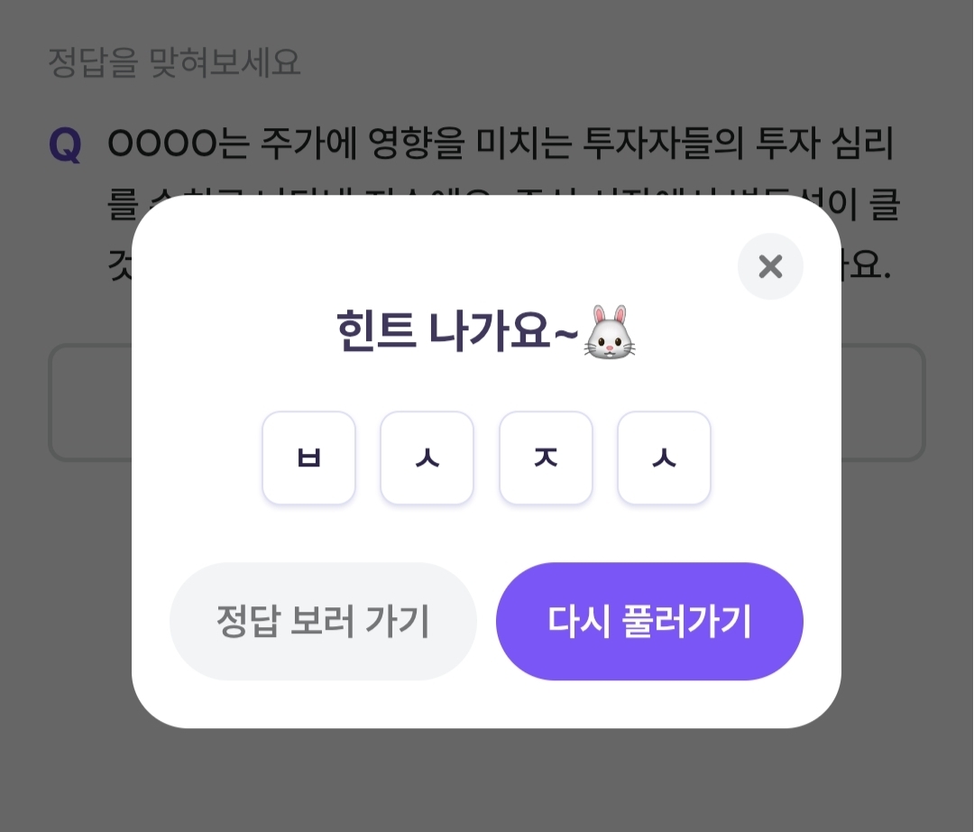 네글자로 초성힌트는 ㅂㅅㅈㅅ입니다.