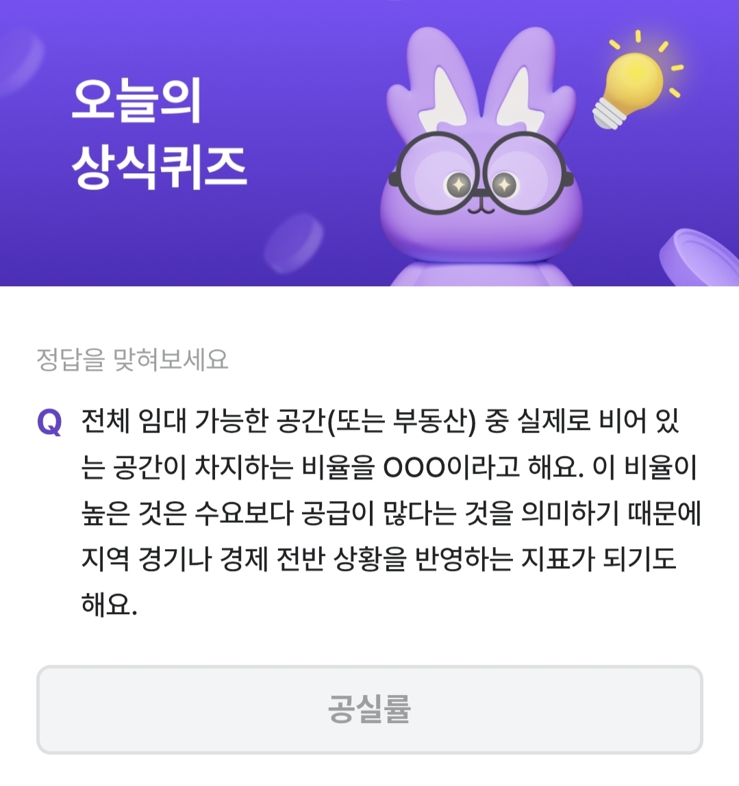 오늘의 비트버니 퀴즈 정답 공실률이었습니다.