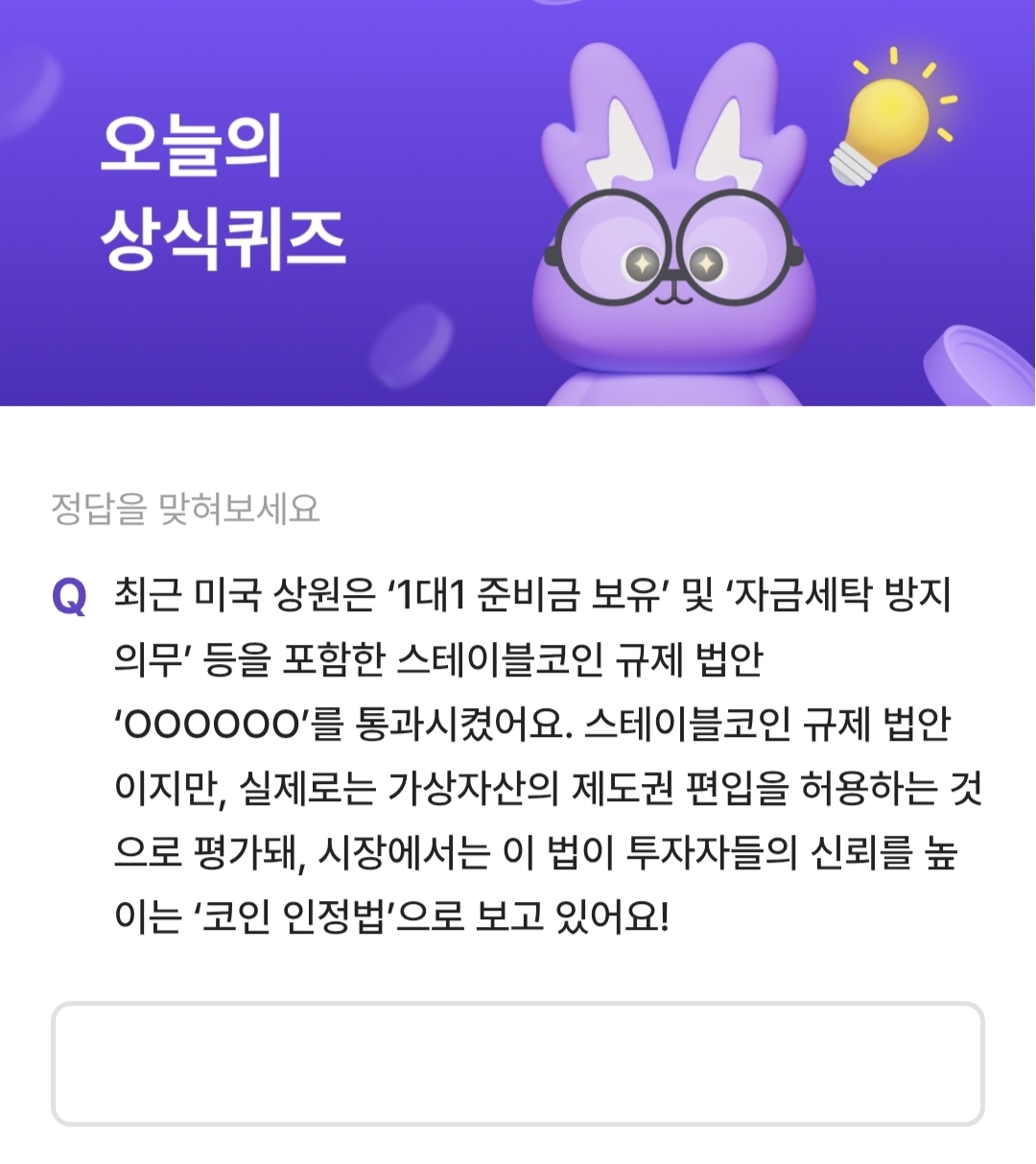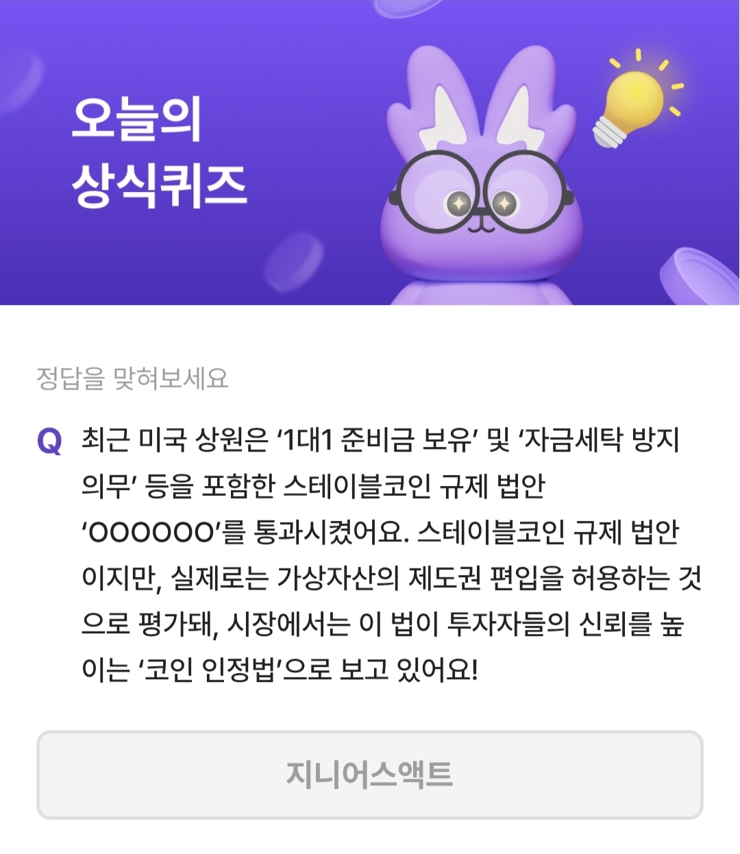 비트버니 퀴즈 6월 4일 정답은 지니어스액트 입니다.