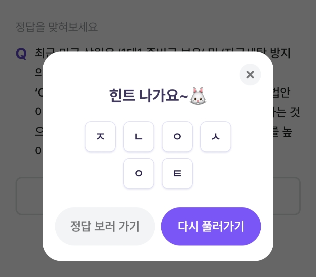비트버니 퀴즈 6월 4일 정답 ㅈㄴㅇㅅㅇㅌ