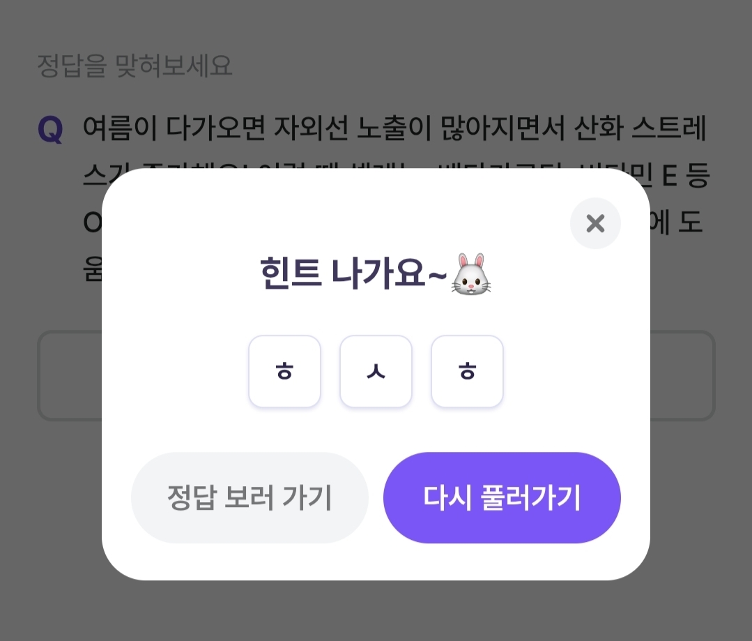 초성힌트는 ㅎㅅㅎ입니다.