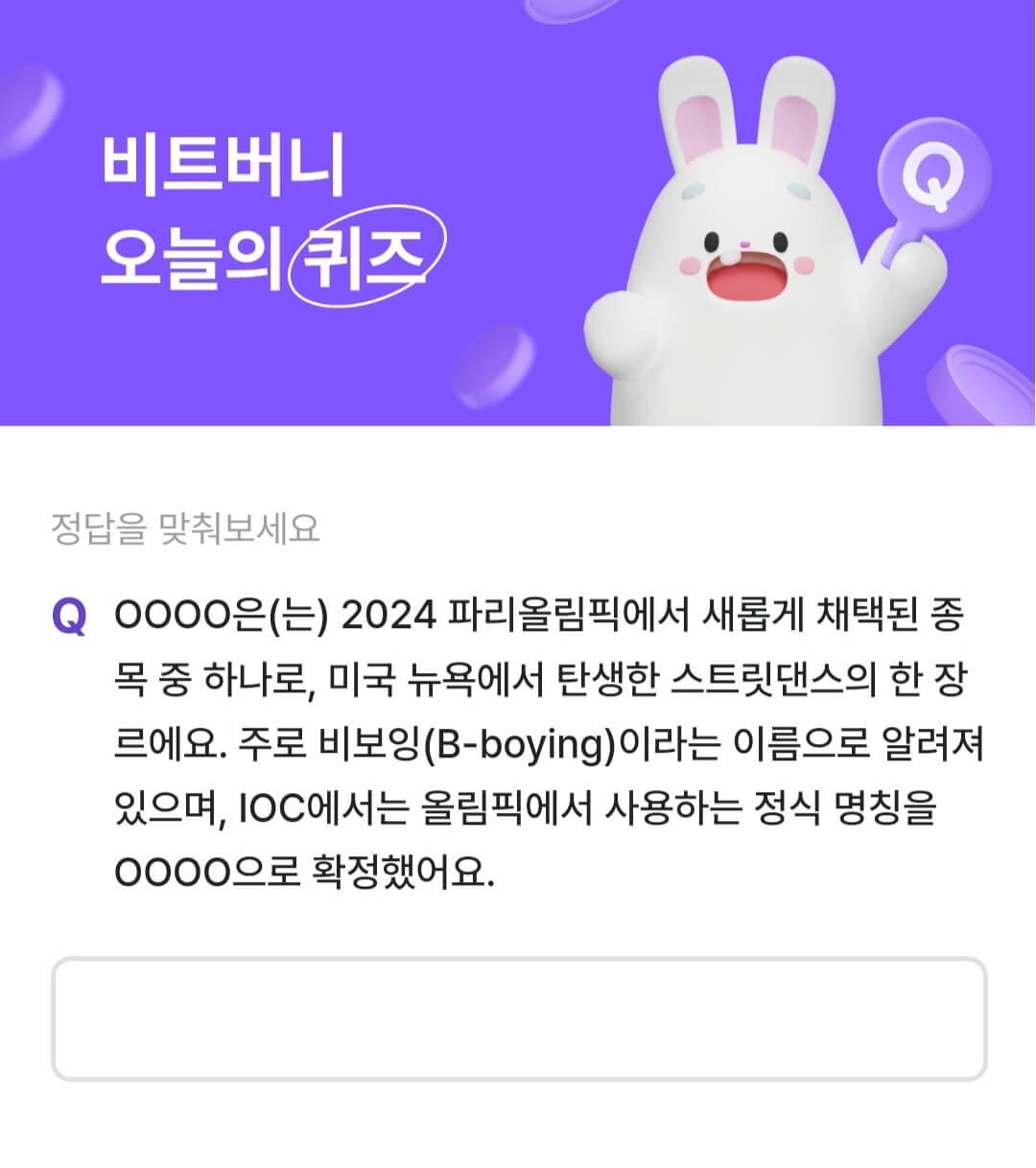 비트버니 퀴즈 8월 11일 정답과 브레이킹에 대해서 정리해 봤습니다. 좋은 하루 보내세요.