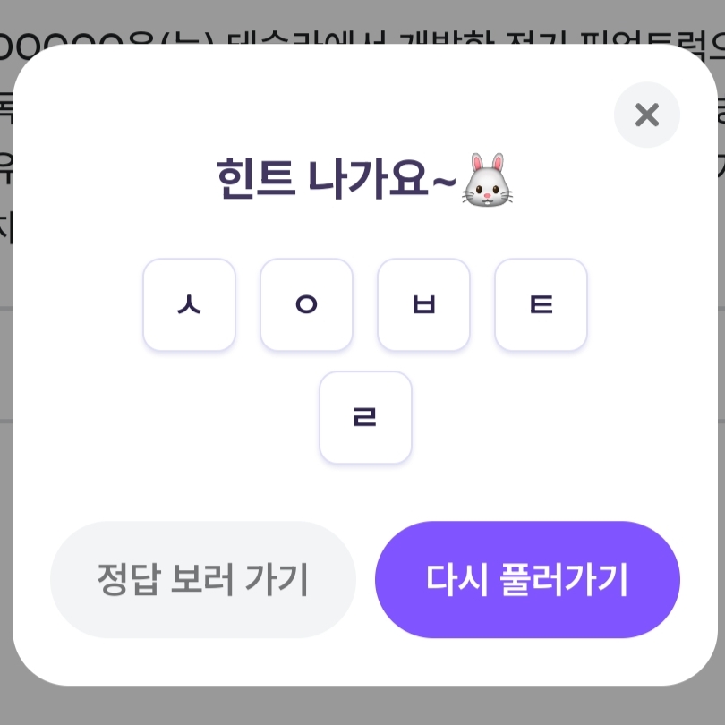 정답 힌트는 ㅅㅇㅂㅌㄹ