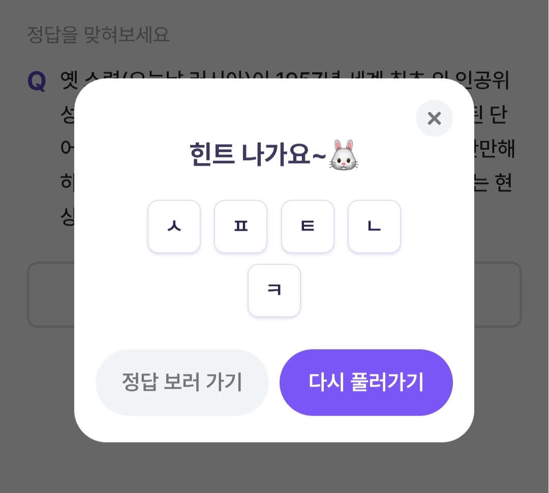 다섯글자 초성힌트는 ㅅㅍㅌㄴㅋ 입니다.