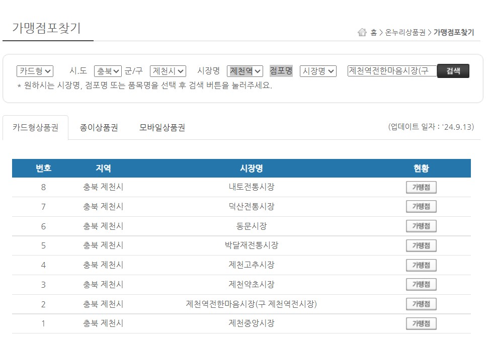 온누리상품권 종류별 지역별로 검색이 가능해서 편하게 이용할 수 있습니다.