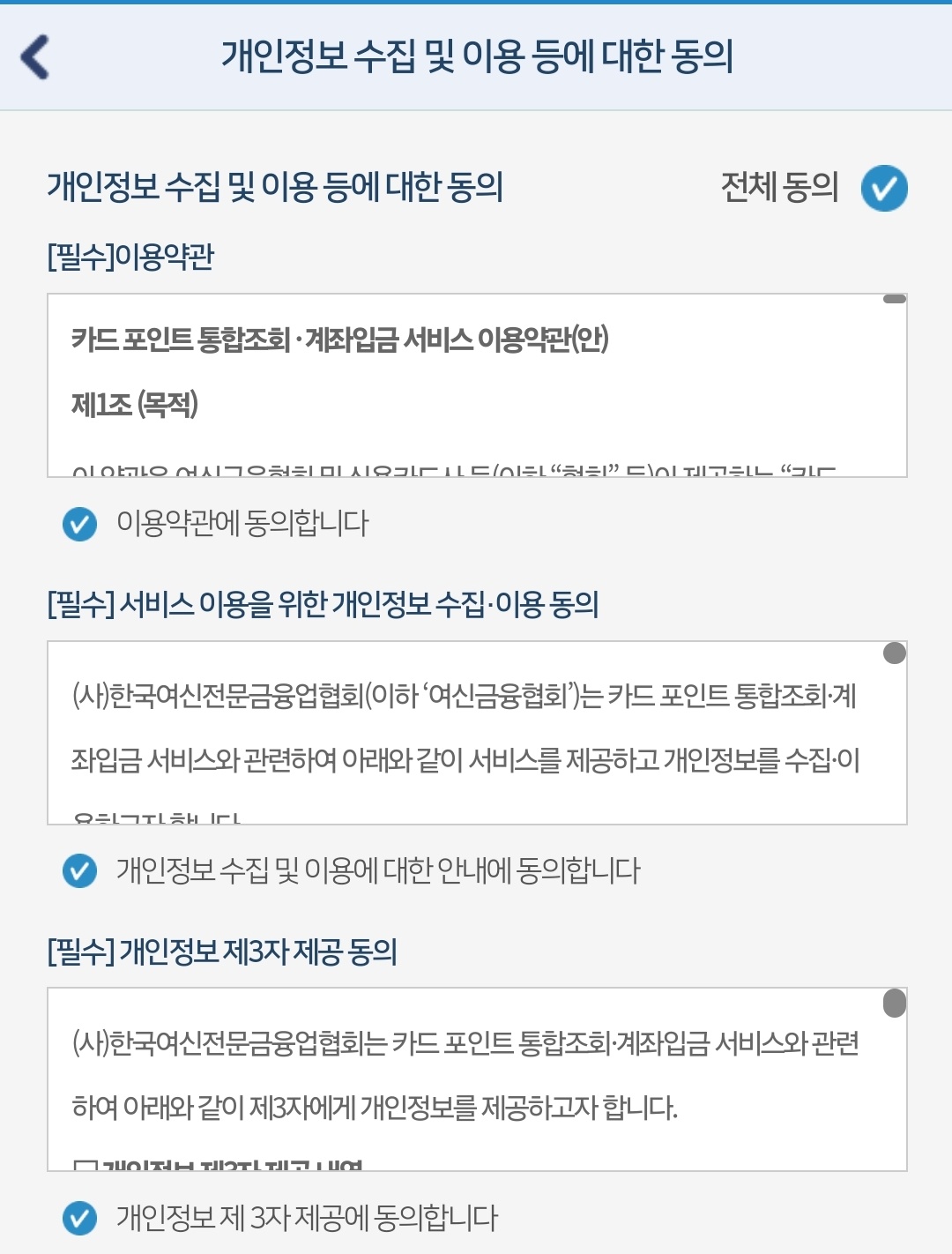 - 카드포인트 통합조회 및 계좌입금 서비스는 개인만 사용가능합니다.