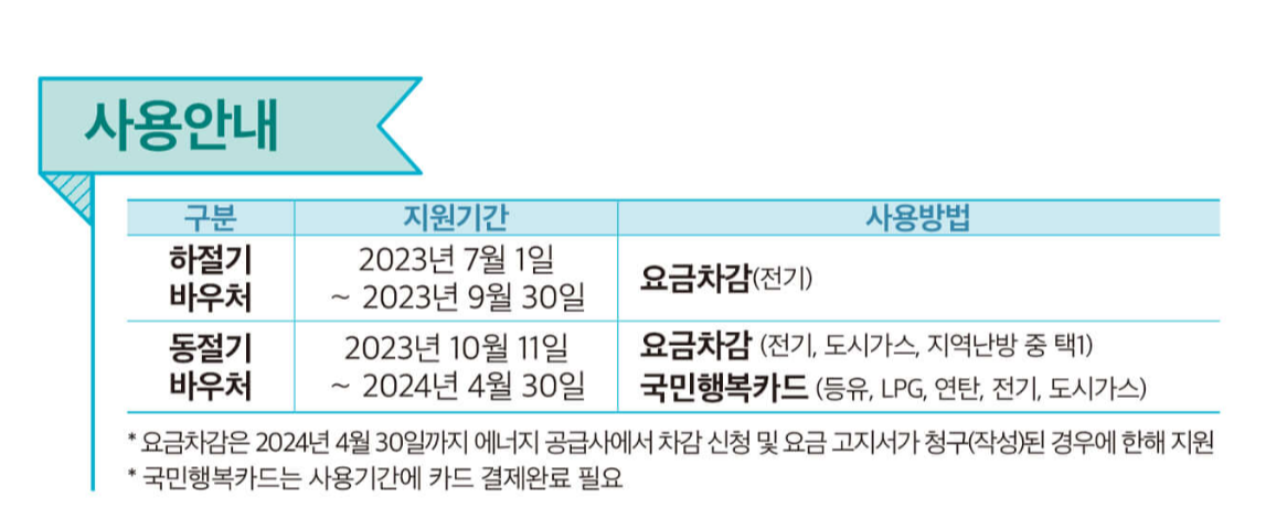 *여름철 바우처 2023년 7월 1일 ~ 9월 30일, 요금 차감의 방식으로